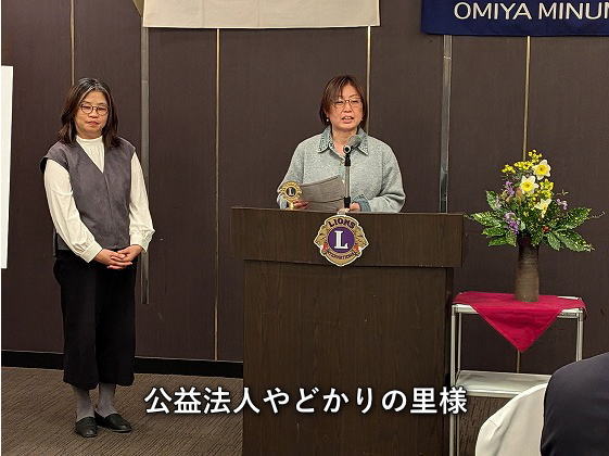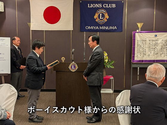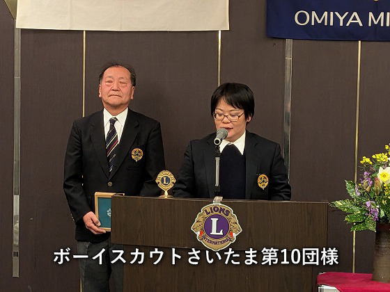 3月5日(木)大宮サンパレスにて3月第一例会を開催しました。 公益財団法人やどかりの里様、ボーイスカウトさいたま第10団様に 例会にて、些少ではありますが何かのお役に立てればとの思いを 込めて、支援金を贈呈いたしました。 |